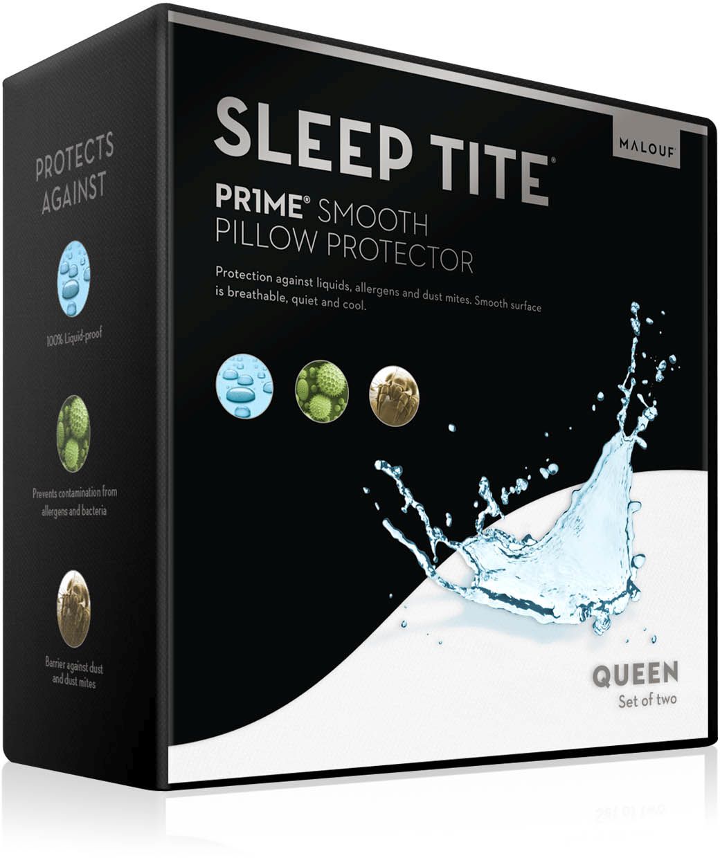 The SLEEP TITE PR1ME Smooth Pillow Protector protects you and your pillow with a 100% waterproof layer that guards against all liquid spills. Soft, smooth fabric is backed by a breathable polyurethane membrane that allows airs to pass while effectively blocking fluids, dust mites and allergens. With a pillowcase design and zippered end, this protector goes on easily and fits without shifting or bunching. It can be easily removed and machine washed to keep your sleep environment clean and fresh. Best of all, the SLEEP TITE PR1ME Smooth protector is cooler and quieter, giving you complete protection without changing the feel of your pillow.